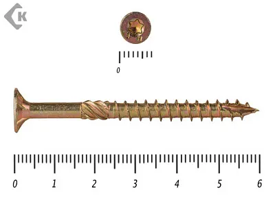 Саморезы Конструкционные, потай Torx, желтый цинк 6.0х180 мм (100 шт)